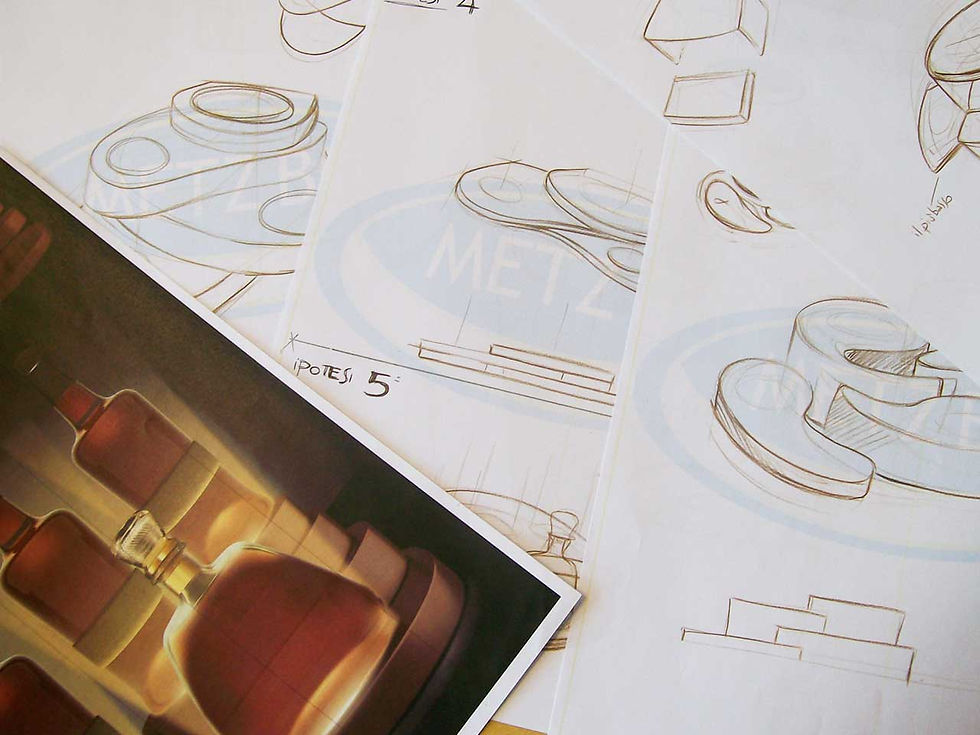 La progettazione comprende: ricerca e analisi, fase di schizzi, concept e mood, modellini, modellazione 3D, render del prodotto e il modello fisico/prototipo.